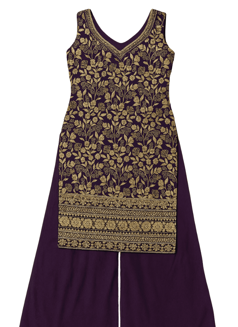 Paired with a beautifully flared sharara, the set offers both comfort and drama in every step. Made from breathable, luxe-feel fabric, it’s perfect for evening celebrations, wedding functions, or festive gatherings where you want to make an unforgettable impression.