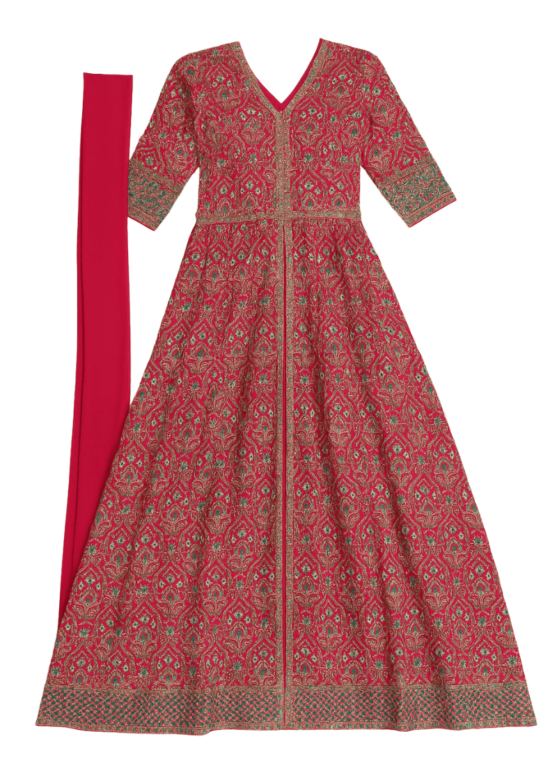 Bathed in opulent tones, this set is paired with wide-leg palazzo pants that bring balance, comfort, and movement to the look. The breathable, lightweight fabric ensures comfort without compromising the grandeur—making it perfect for festive evenings, weddings, or upscale gatherings.