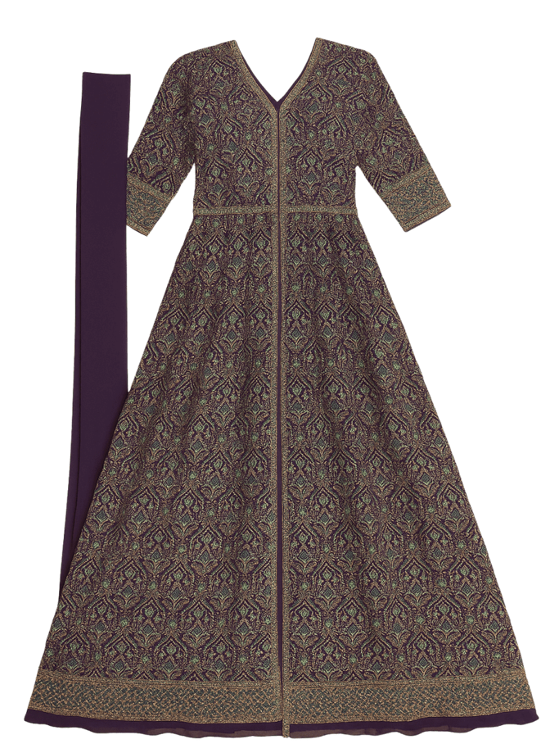 Regal-toned front-cut kurta with luxe detailing and a flattering silhouette